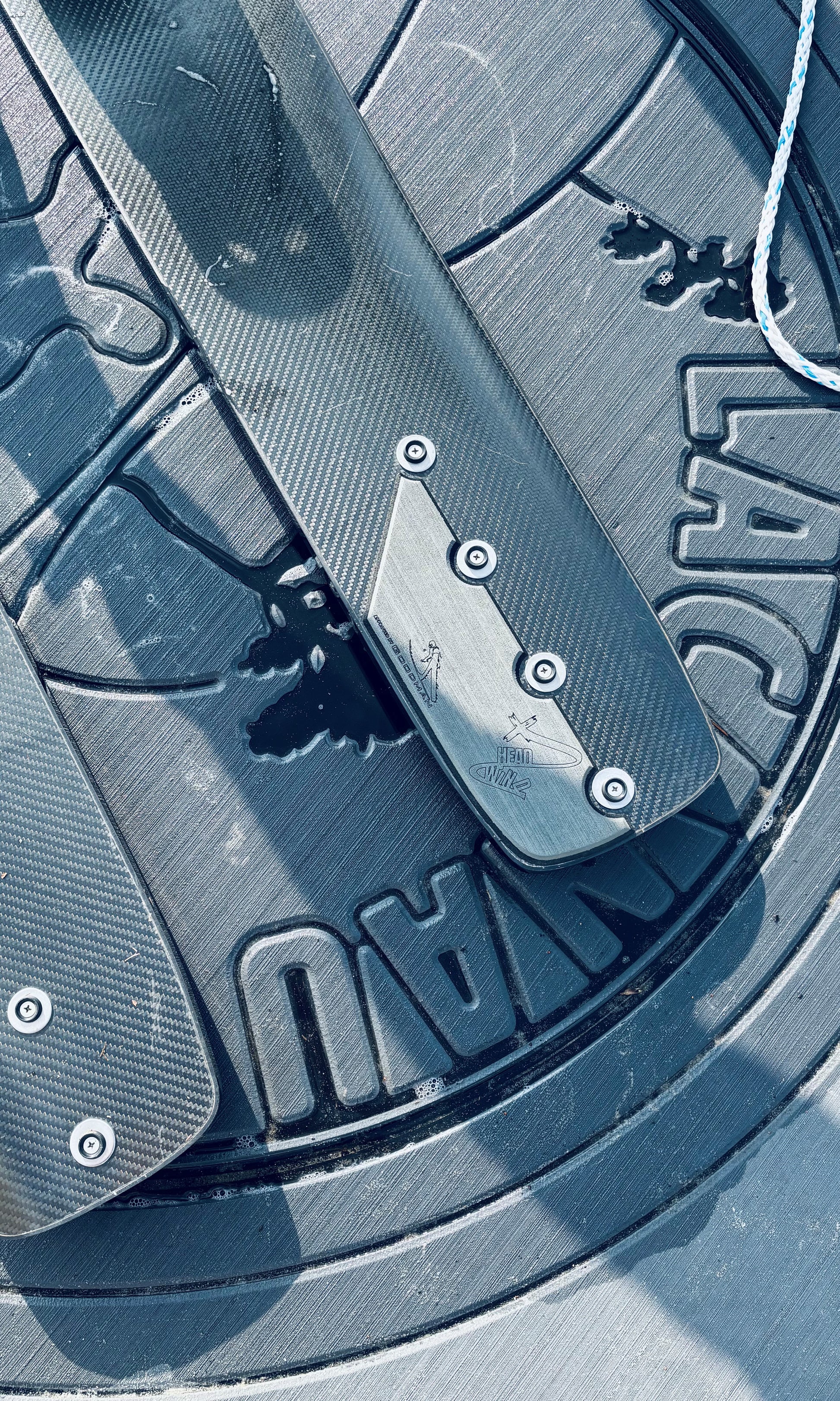 Those padds are made to protect the tail of your skis from fin impact and can be used for design too.